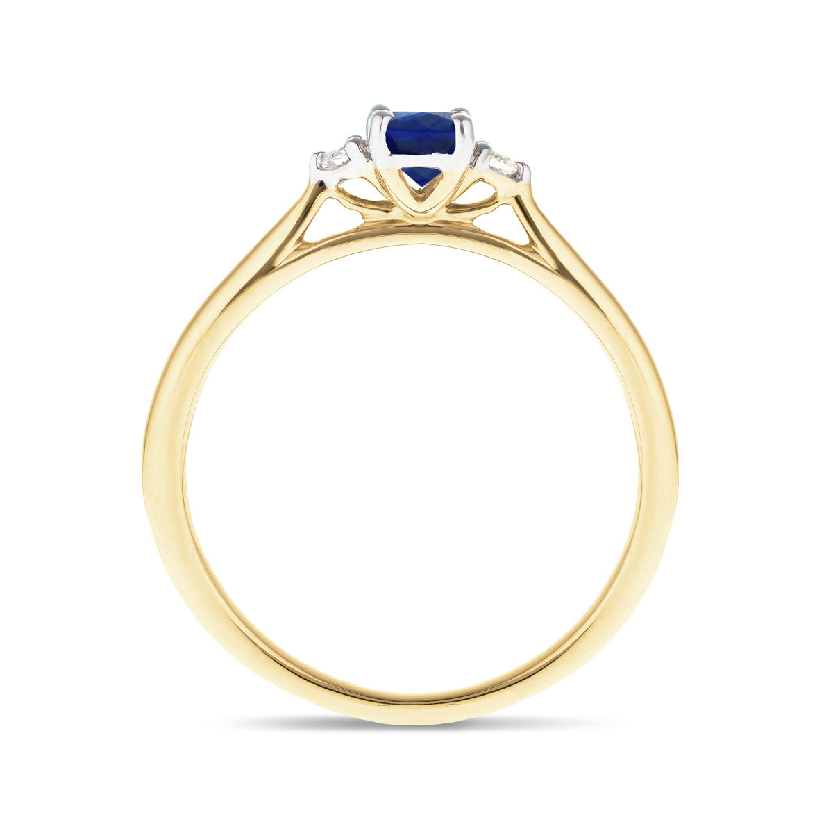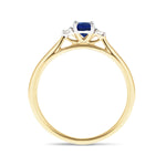 Blue Sapphire 0.60ct Diamond 0.06ct Three Stone Ring 9k Yellow Gold - All Diamond