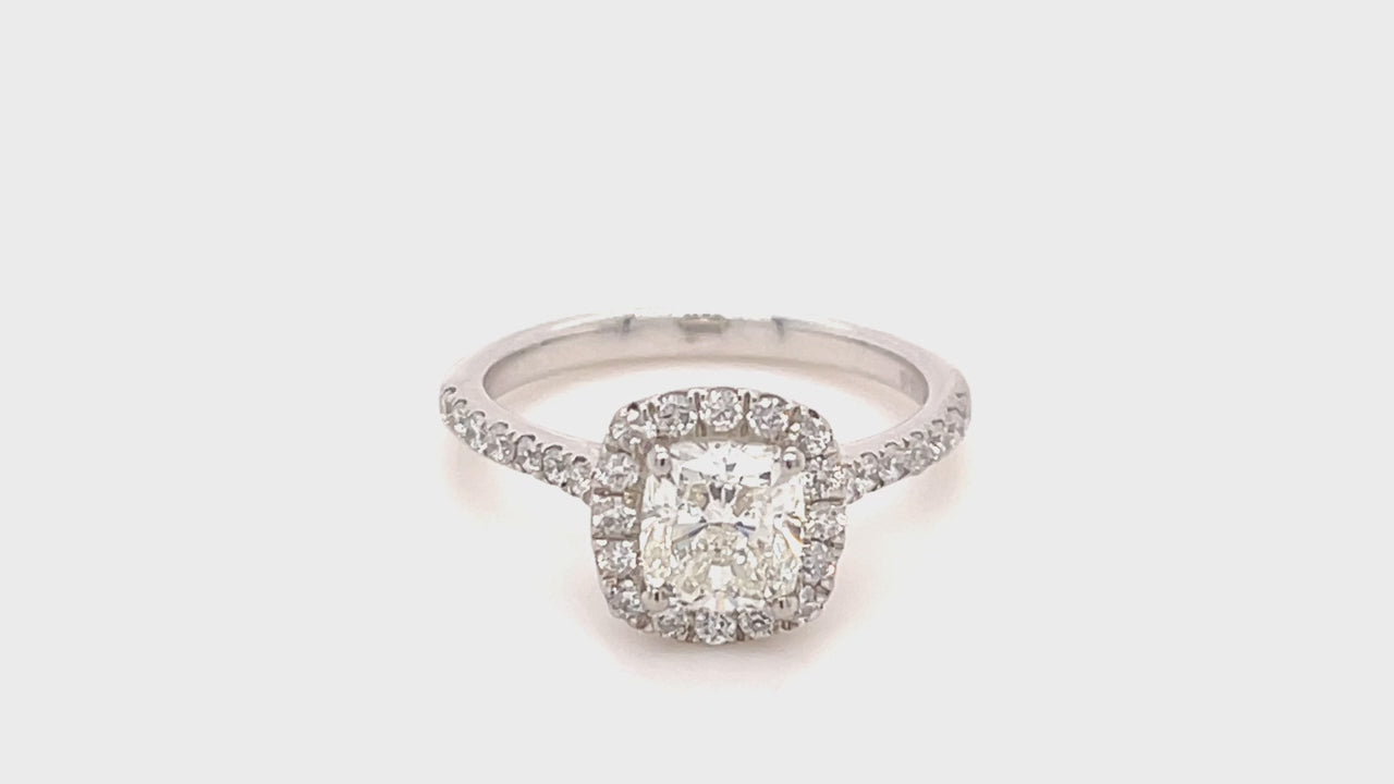 Certified Diamond Halo Cushion Engagement Ring 1.45ct Platinum - All Diamond