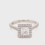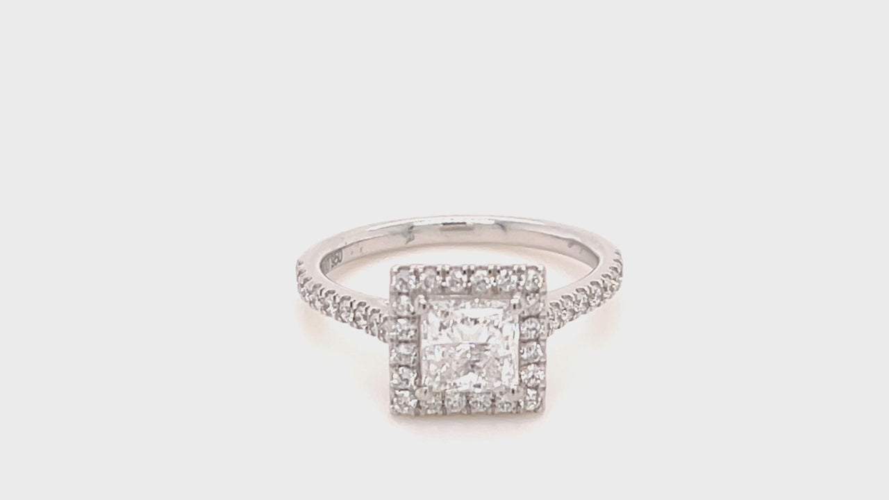 Certified Diamond Halo Princess Engagement Ring 1.36ct 18k White Gold - All Diamond