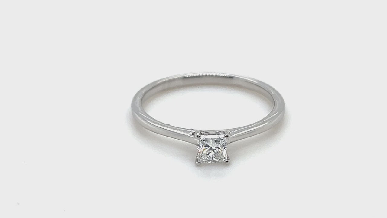 No se conforme con un anillo de princesa común y corriente. Elige algo elegante y clásico que te dure toda la vida. Este clásico anillo de compromiso de diamantes de talla princesa está elaborado en platino, lo que lo hace increíblemente duradero. El diamante solitario que pesa 0,30 quilates y tiene una calificación de G/SI se mantiene en su lugar mediante un engaste de cuatro garras. Un diamante certificado por EDR garantiza que su anillo será todo lo que desea. ¡No es de extrañar por qué este anillo de compromiso tiene tanto éxito entre las mujeres de todo el Reino Unido!