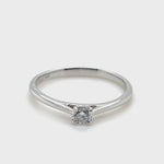Tiene la seguridad de la calidad y el valor con este encantador anillo de compromiso con solitario de diamantes. Diseñado en el Reino Unido para deleitar a su prometida cuando coloca el anillo en su dedo, este anillo presenta un diamante de 0,25 quilates clasificado como calidad G/SI. El diamante solitario está engastado en una banda de platino con el sello del Reino Unido usando una montura de garra de cuatro puntas. El diamante se muestra perfectamente en el engaste de garra. Proporcionamos el certificado de clasificación de diamantes, un informe de valoración del seguro y una garantía de mano de obra de por vida con este hermoso anillo de compromiso.