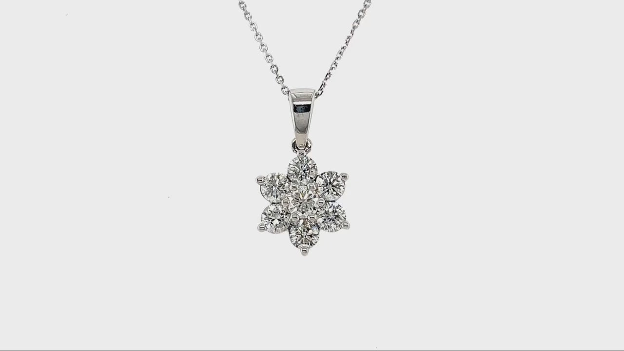 Daisy Diamond Cluster Pendant Necklace 1.00ct G/SI 18k White Gold - All Diamond