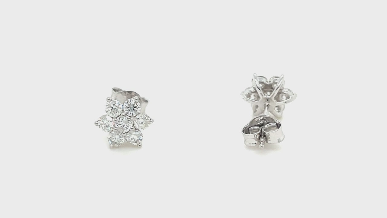 Daisy Diamond Cluster Earrings 1.00ct G/SI in 18k White Gold - All Diamond