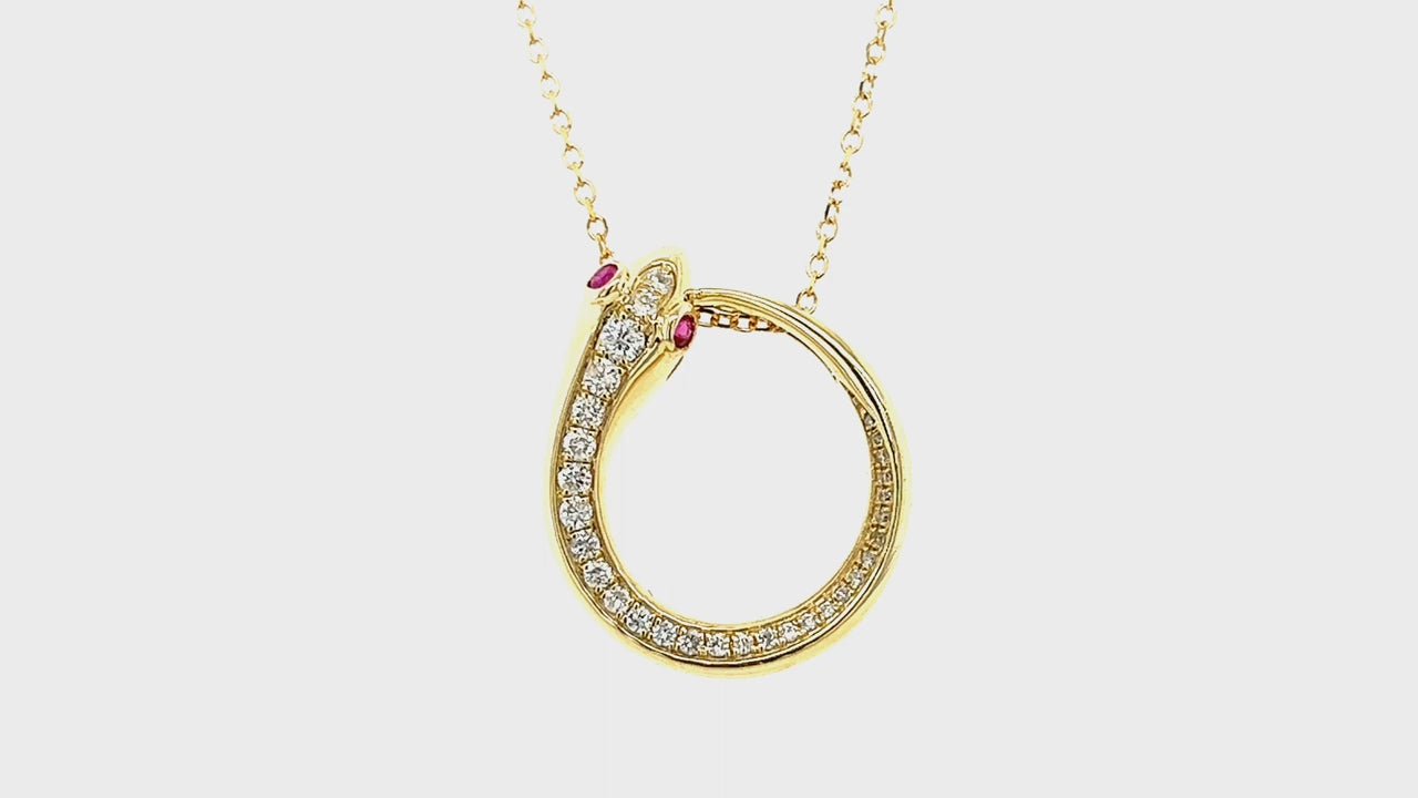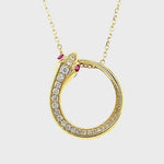 Diamond and Ruby Snake Pendant Necklace 0.30ct in 9k Yellow Gold - All Diamond