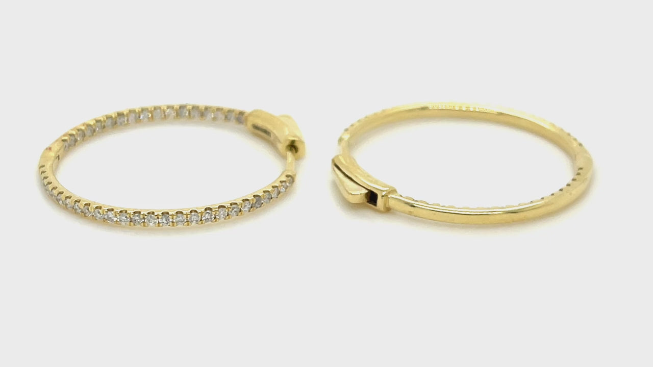 Aretes tipo argolla con diamantes 0.90ct Calidad G/SI Oro amarillo de 18k 29.0mm