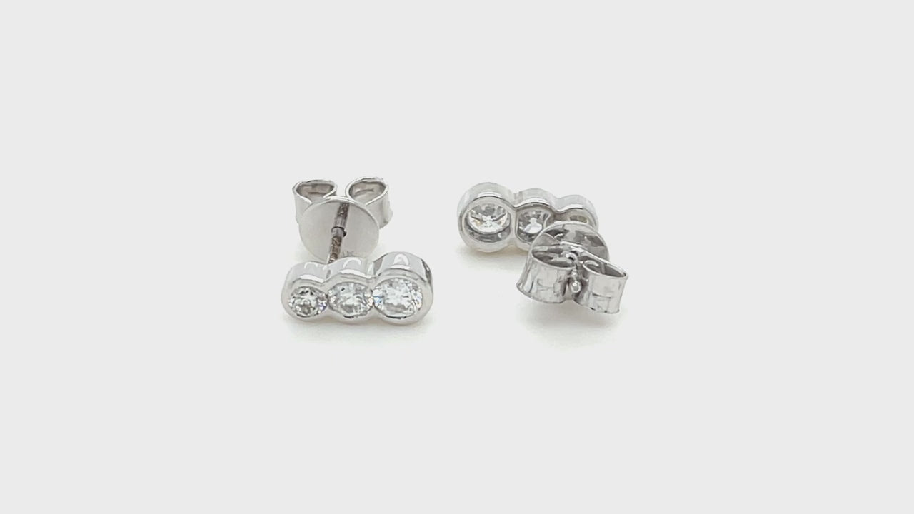 Diamond Trilogy Rub Over Drop Earrings 0.60ct G/SI 18k White Gold - All Diamond