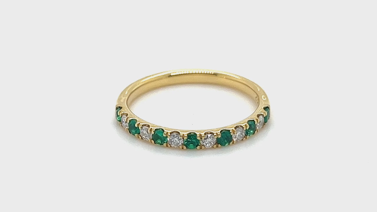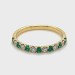 Anillo de media eternidad de diamantes y esmeraldas de 0,55 quilates en oro amarillo de 18 k