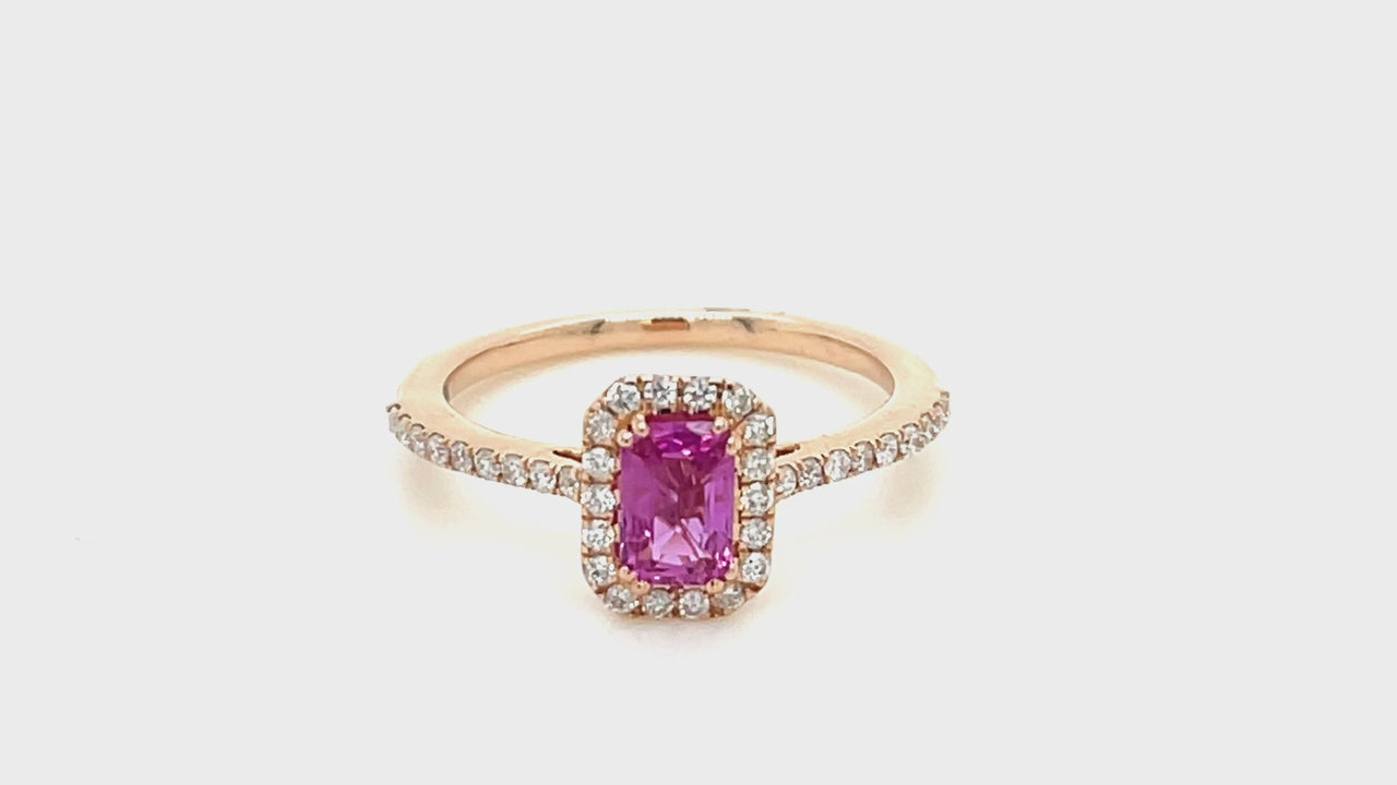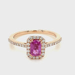 Emerald Pink Sapphire & Diamond 0.90ct Halo Ring in 18k Rose Gold - All Diamond