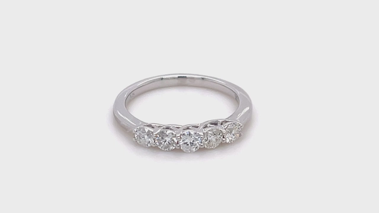 Five Stone Diamond Ring with 0.50ct G/SI Quality in 18k White Gold - All Diamond