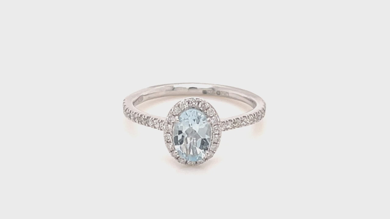 Halo Aquamarine 0.66ct and Diamond 0.27ct Ring in Platinum - All Diamond