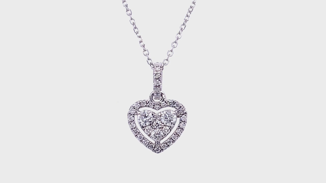 Halo Cluster Heart Necklace 0.40ct G/SI Diamond in 18K White Gold - All Diamond