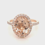 Halo Oval Morganite 4.26ct and Diamond 0.49ct Ring in 9k Rose Gold - All Diamond