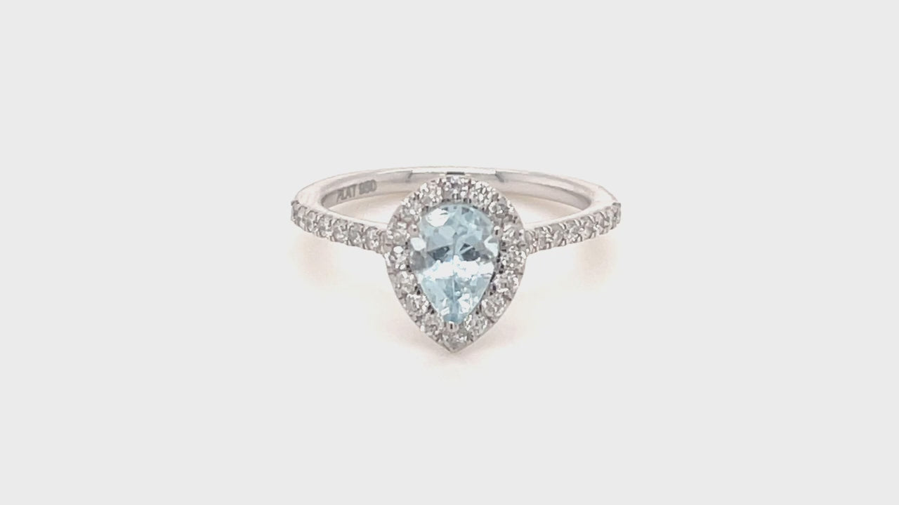 Halo Pear Aquamarine 0.57ct and Diamond 0.34ct Ring in 18K White Gold - All Diamond