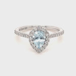 Halo Pear Aquamarine 0.57ct and Diamond 0.34ct Ring in Platinum - All Diamond