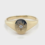 Mens Single Diamond Signet Ring 0.06ct in 9k Yellow Gold - All Diamond