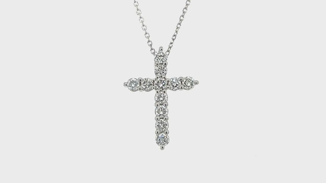 Modern Diamond Cross Pendant Necklace 0.75ct in 18k White Gold - All Diamond