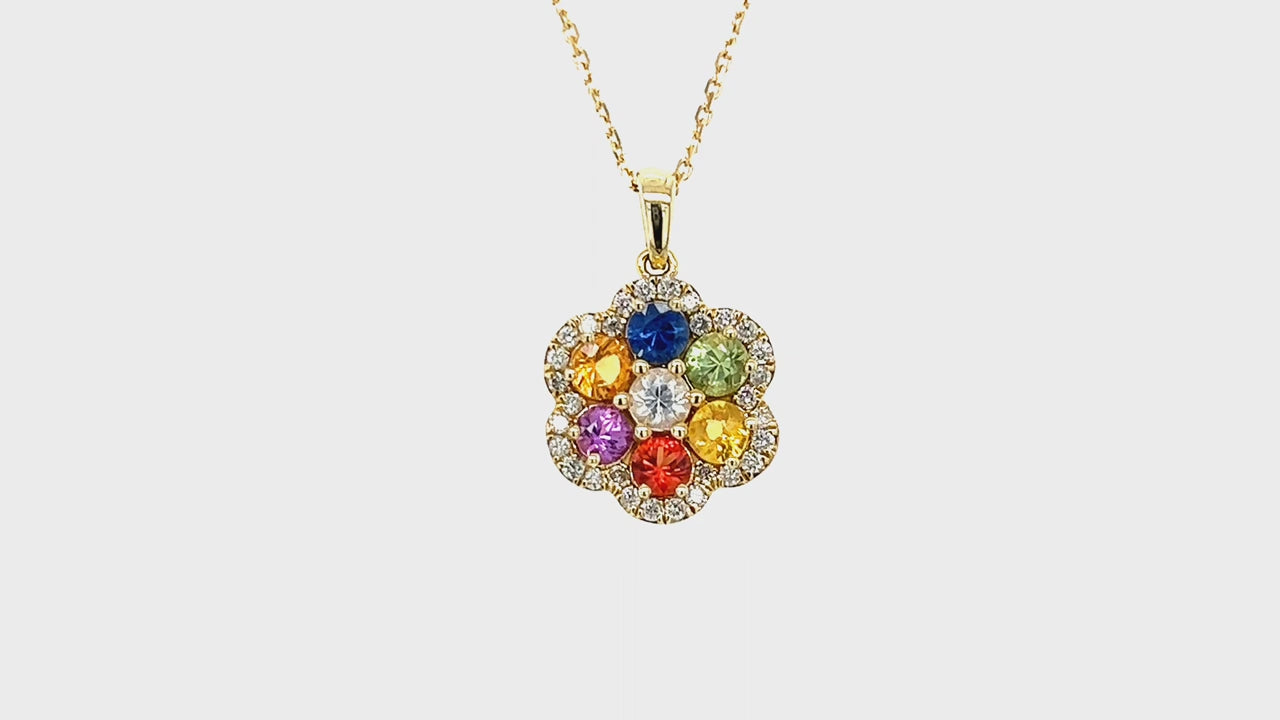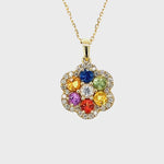 Multi Sapphire and Diamond Pendant Necklace 1.20ct in 9k Yellow Gold - All Diamond