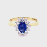 Oval 1.00ct Blue Sapphire 0.30ct Diamond Cluster Ring 18k Yellow Gold - All Diamond