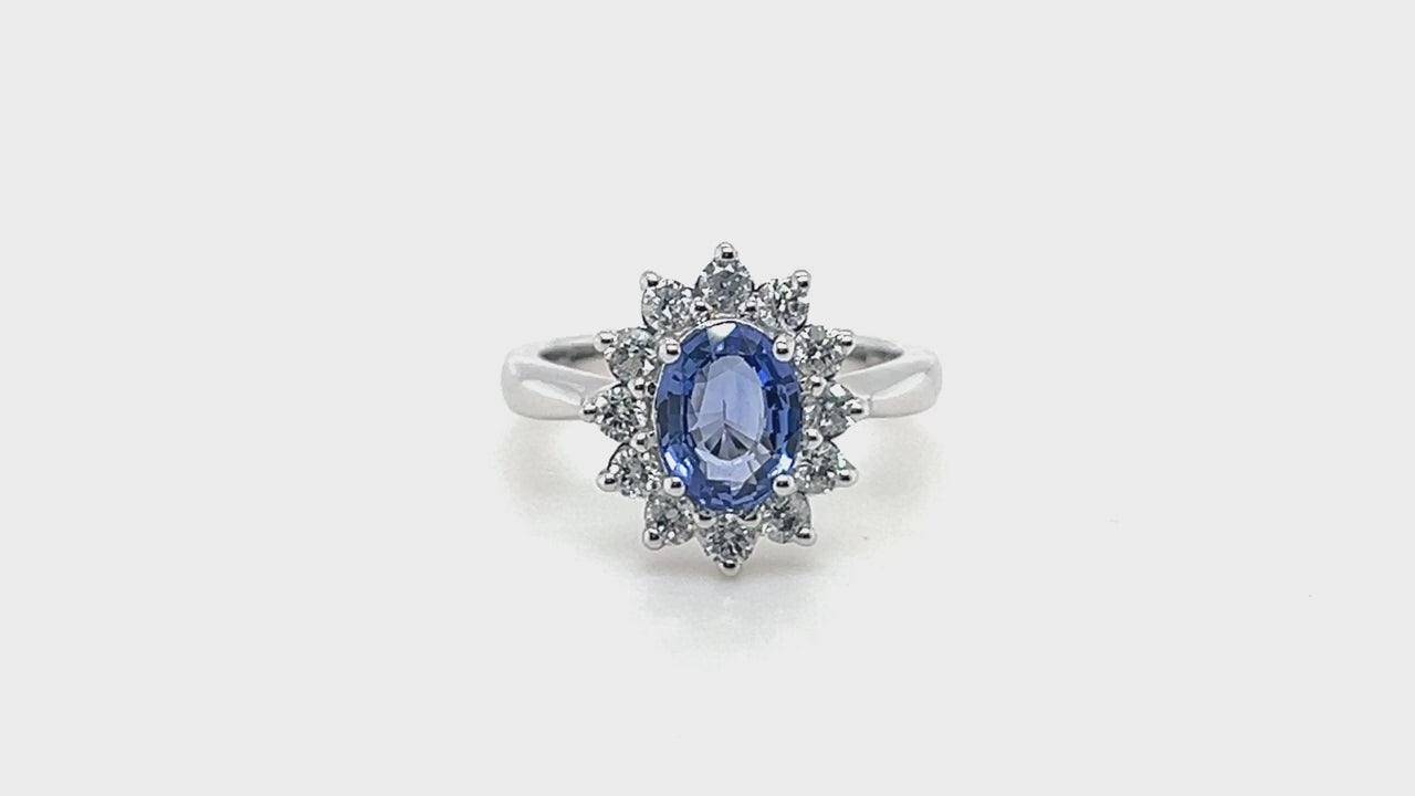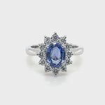 Oval 1.50ct Blue Sapphire 0.50ct Diamond Cluster Ring 18k White Gold - All Diamond