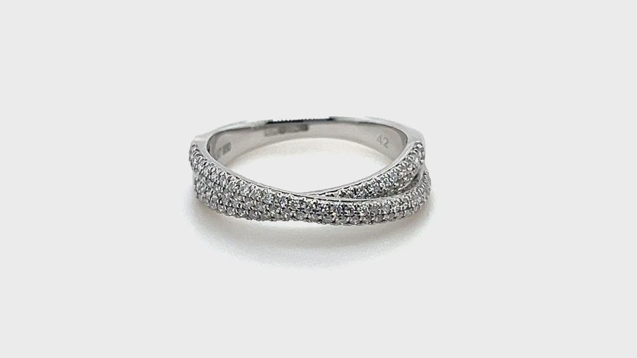 Pave Diamond Half Eternity Crossover Ring 0.50ct G/SI 18k White Gold - All Diamond