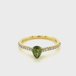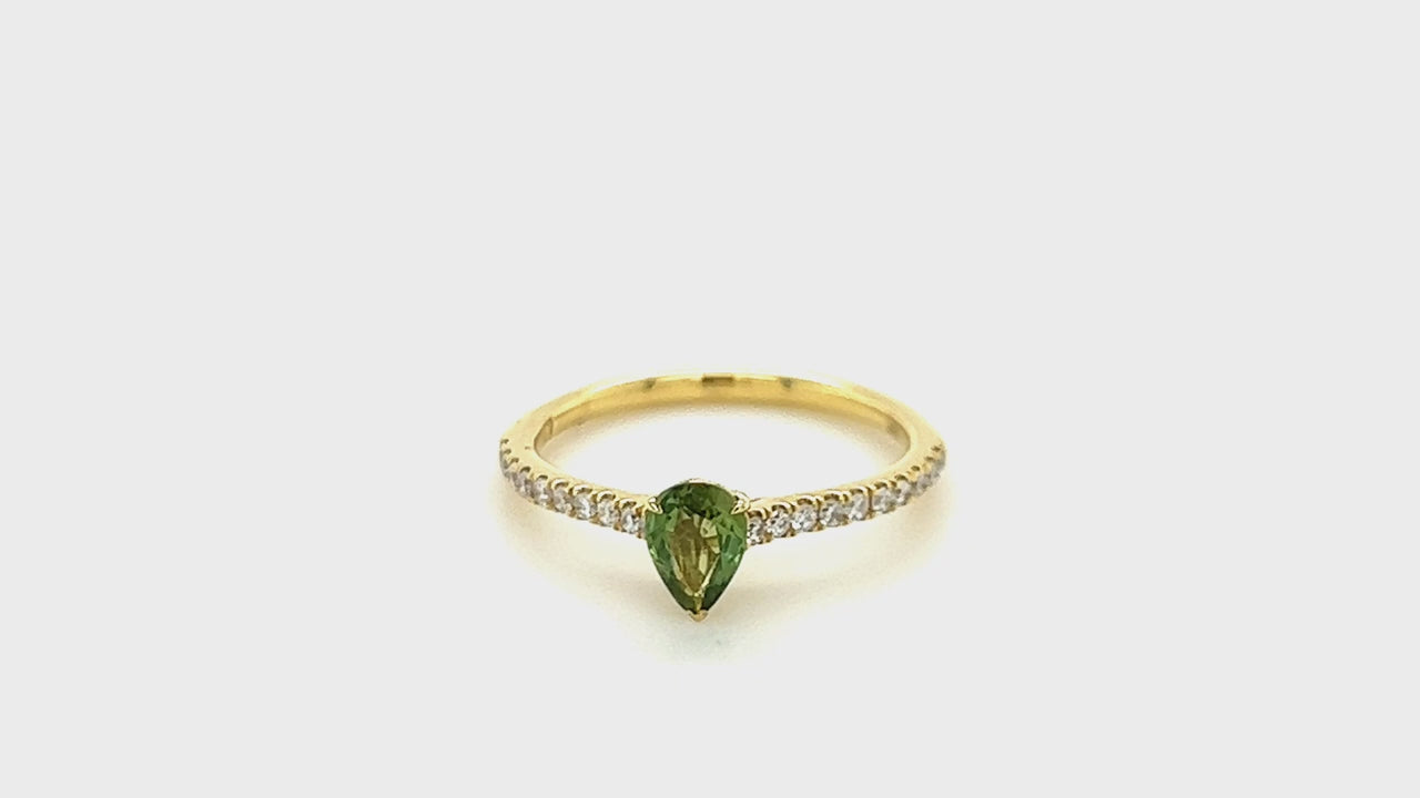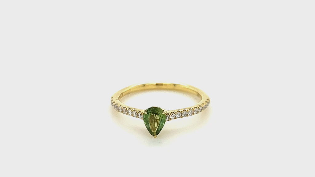 Pear Green Sapphire and Diamond Engagement Ring 0.70ct in 18k Yellow Gold - All Diamond