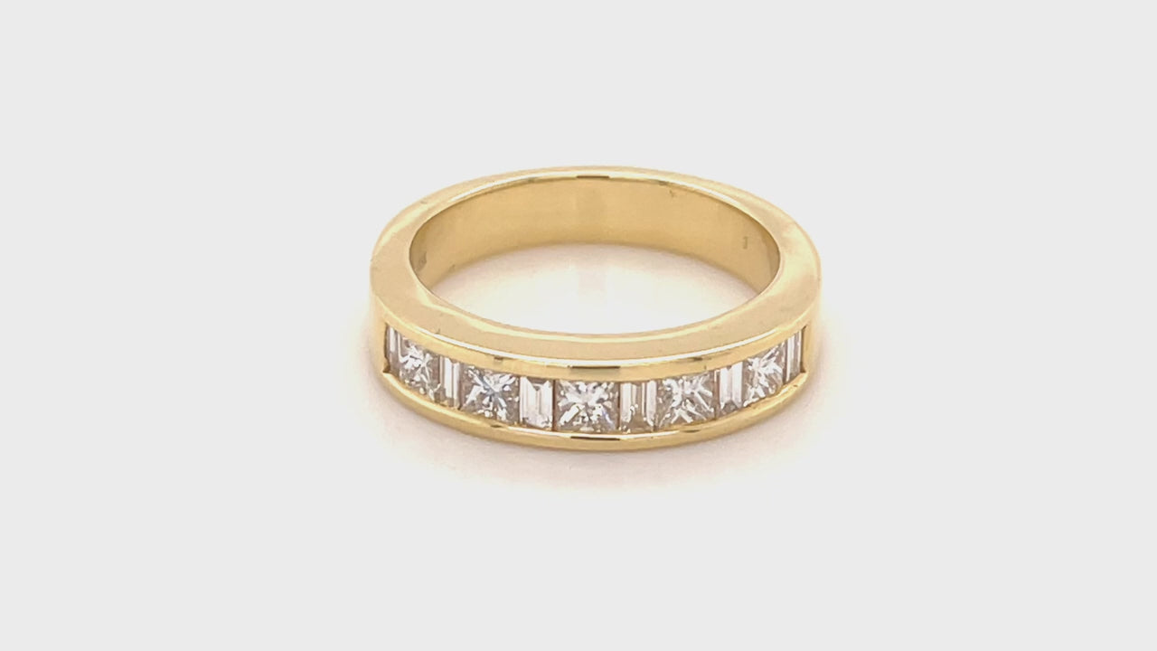 Princess & Baguette Diamond Half Eternity Ring 1.10ct 18k Yellow Gold - All Diamond