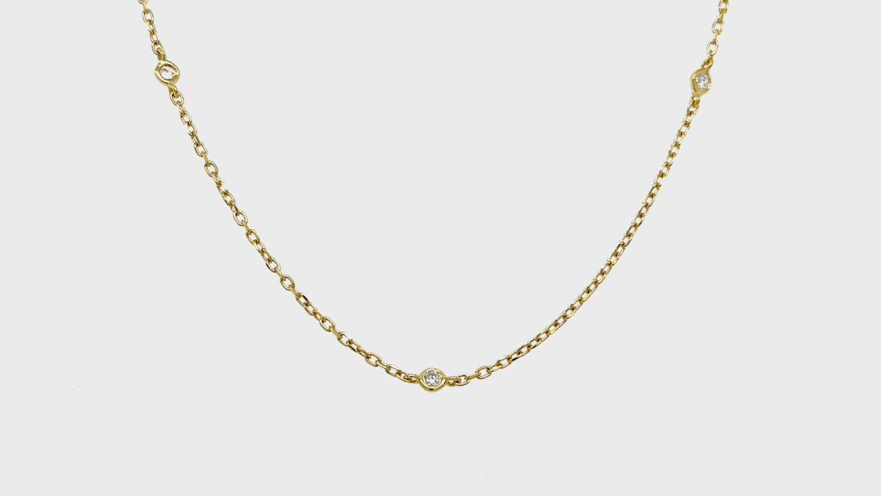 Round Diamond Chain Necklace 0.20ct G/SI 18k Yellow Gold 16" - All Diamond