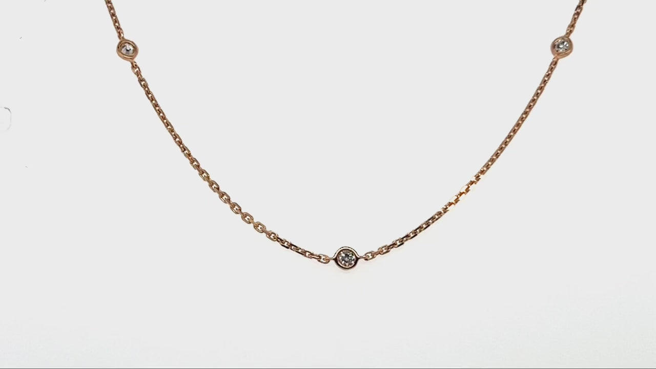 Round Diamond Chain Necklace 0.32ct G/SI 18k Rose Gold 16" - All Diamond