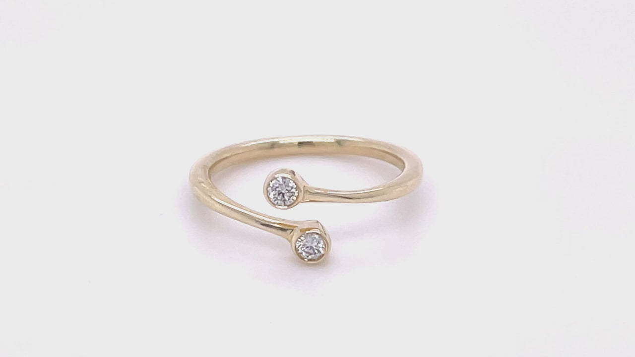 Este anillo torque de diamantes está hecho a mano en oro amarillo de 9k. El oro amarillo de 9k tiene un sello de calidad del Reino Unido. Los dos diamantes de calidad G/SI tienen un peso total en quilates de 0,10 quilates y están montados en elegantes engastes frotados. El anillo de torsión de diamantes se verá hermoso y elegante en la mano y seguramente agregará un toque de elegancia a cualquier look. Este encantador anillo es verdaderamente una hermosa pieza de joyería, seguro que hará que su amada se sienta orgullosa y feliz.