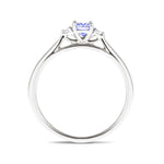Tanzanita 0.50ct Diamante 0.06ct Anillo de tres piedras Oro blanco 9k